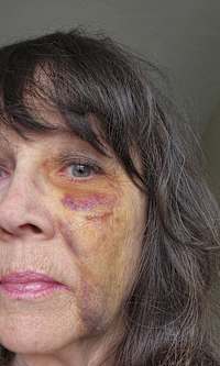 I have never experienced a black eye, so watching how this thing developed was interesting. The bruising slowly made its way down my face, and then began to turn a yellow-green. It resembled a lava flow. As of today, Day 8, the bruising has reached my neck. One whole side of my face is still purple, yellow, and green.